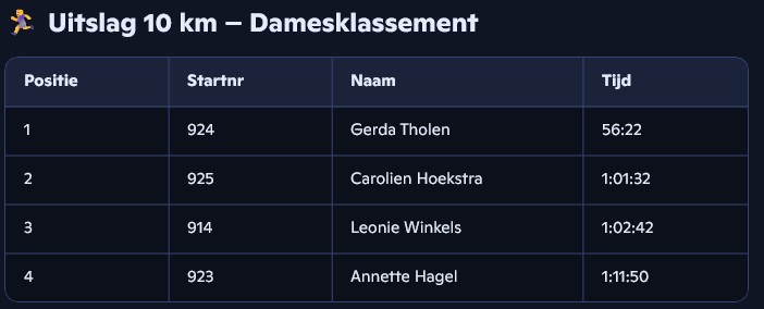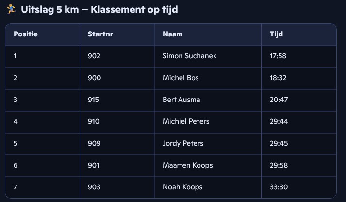 Voor de nummer 1-2-3 wordt er per afstand een prijs uitgereikt.